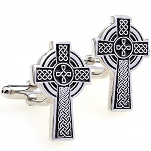 Covink Jesus Cross Men's Cufflinks Catholic Cross Celtic Cuff Links Silver and Black One Pair