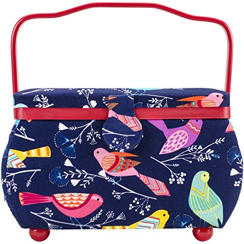 Sewing Basket Rectangle -10.5"X6"X7" Birds On Blue by PRYM
