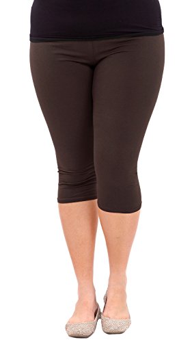 Woman Plus Size Elastic Waist Cotton Capri Leggings,Brown,3X Plus