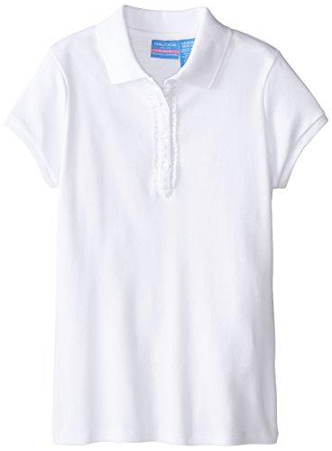 Nautica Girls' Uniform Short Sleeve Interlock Polo with Ruffle