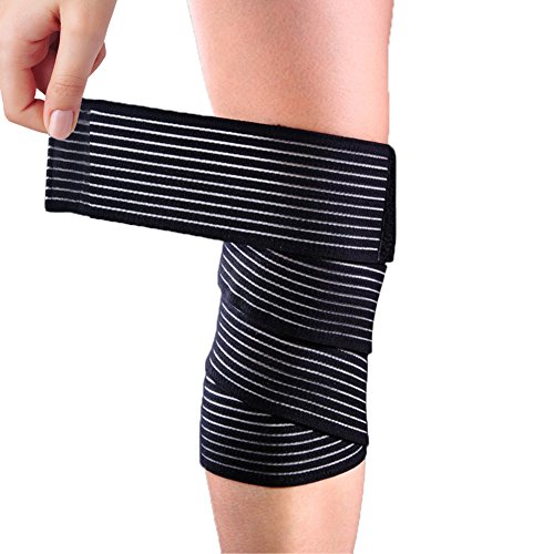 Yosoo Black High elasticity Calf Thigh Support Knee Brace Compression Wrap Support Bandage Brace Guard Injury Pain Sports Pad-Pack of 1