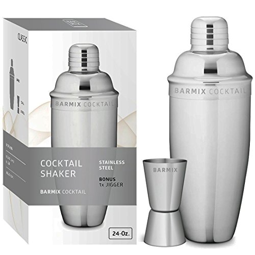 Barmix Martini Cocktail Shaker 24 Ounces, Stainless Steel, Jigger Included