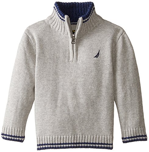 Nautica Baby Boys' Zip Neck Sweater with Tipping, Grey Heather, 12 Months