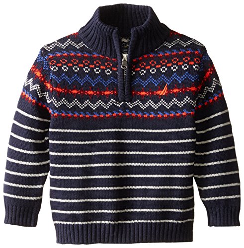 Nautica Baby Boys' Zip Neck Fairisle Sweater with Stripe, Sport Navy, 12 Months