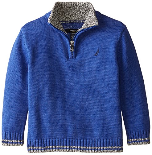 Nautica Baby Boys' Zip Neck Sweater with Tipping, Ocean Blue, 24 Months