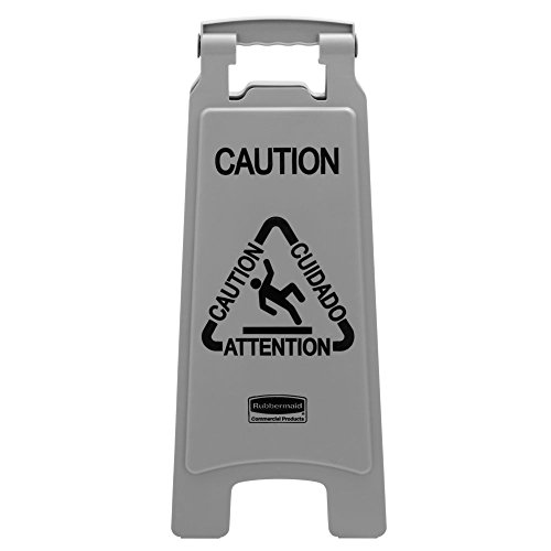 Rubbermaid Commercial Executive Series 26 Inch Multilingual "Caution" Sign, 2-Sided, Gray (1867506)