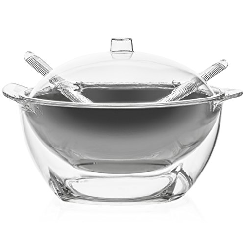 Jumbl Stainless Steel Salad Bowl Serve-Cilled Set Dome Lid & Serving Utensils,Silver