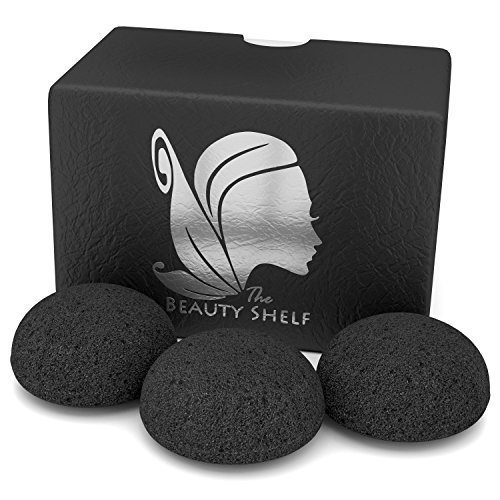 Konjac Sponge (3 Pack) Activated Bamboo Charcoal. Facial Cleansing & Exfoliating Beauty Sponges