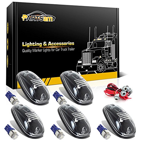 Partsam 5X Cab Roof Running Clear 822072AC Light+168 5-5050-SMD Blue LED Bulbs w/ T10 Harness Compatible with Dodge Ram 1500 2500 3500 4500 5500 2003-2018 Pickup Trucks