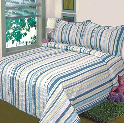 Fancy Collection 3pc Bedspread Stripes White Blue Yellow Green New 00523 (King)