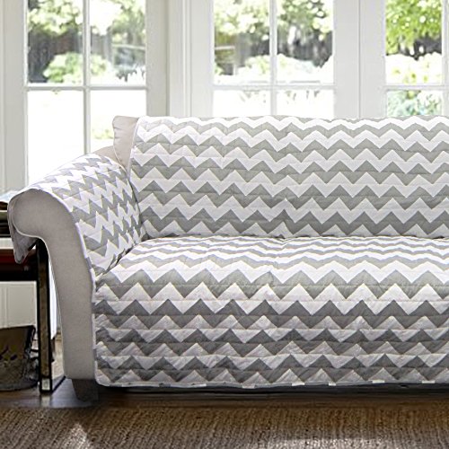 Lush Decor Chevron Slipcover/Furniture Protector for Loveseat, Gray/White