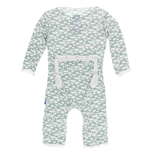 KicKee Pants Little Girls Ruffle Footie Pajama, Pond Flower Lattice, 3T