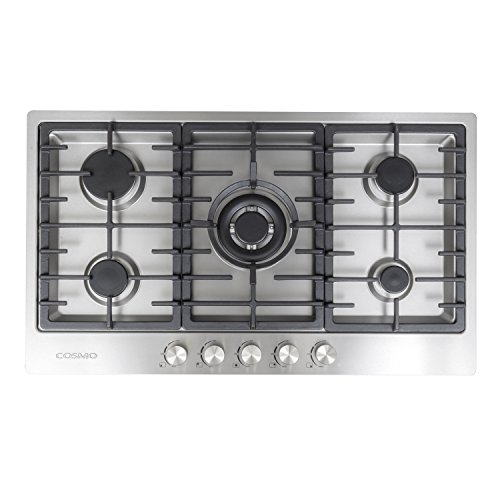 Cosmo VA-S950M 34" Gas Cooktop with 5 Italian Made Burners Drop-in, Cast Iron Grate, Metal Front Knob Control Panel, Stainless Steel