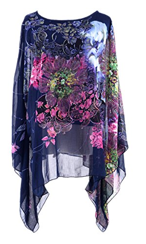 Sally Hansen Women Chiffon Caftan Poncho Blue
