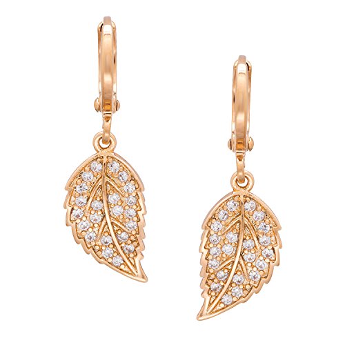 Romantic Time Lovely 18k Rose Gold Plated Diamond Filigree Leaf Dangle Earrings