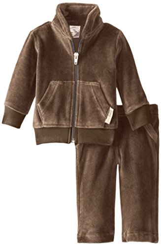 L'ovedbaby Unisex-Baby Newborn Organic Cotton Velour Track Suit, Bark, 12-18 Months