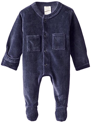 L'ovedbaby Unisex Baby Organic Cotton Velour Footed Overall, Navy, 6-9 Months