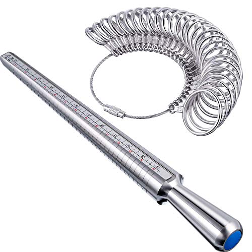 Mudder Aluminum Ring Mandrel Sizer Finger Sizing Measuring Stick - Size 1-13, with Ring Sizer Gauge Set of 27 Pcs