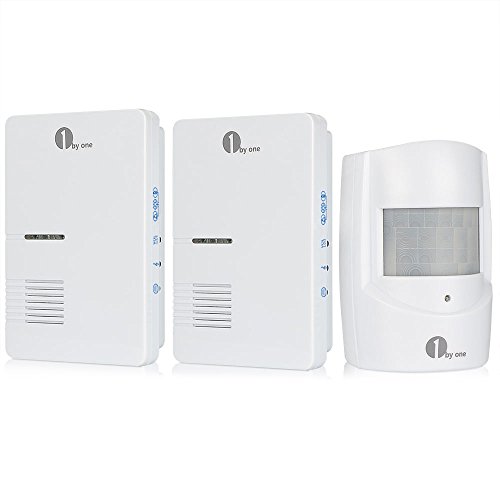 1byone Wireless Driveway Alert, Infrared Motion Sensor with 2 Plug-in Receivers and 1 Sensor