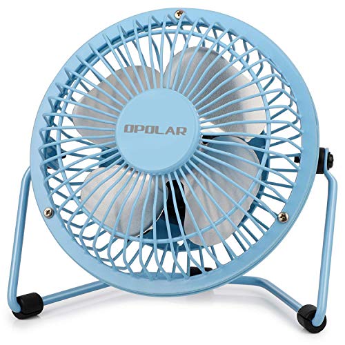 OPOLAR Mini USB Desk Fan ,USB Powered, Metal Design, Quiet Operation; 3.9 ft USB Cord, Handheld Size, Power Saving , Personal Table Fan for Home and Office-Blue