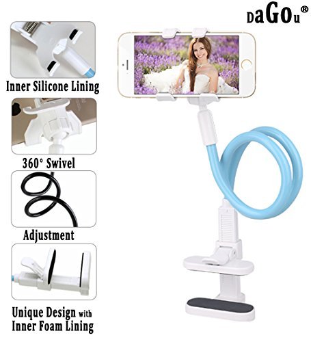 DaGou, Gooseneck Flexible Long Arms Cell Phone Clip Holder Stand with Sitck-On Car Mount for IPhone 6,6 Plus,5,4S,3GS,IPod,GPS,PDA,Samsung Galaxy, HTC, Nokia, LG, Blackberry Holder with Fully Function (Blue)