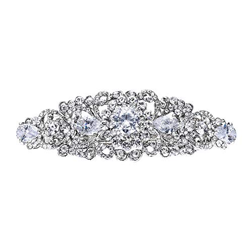 EVER FAITH Silver-Tone Austrian Crystal CZ Bridal Art Deco Flower Vine Hair Barrette Clip Clear