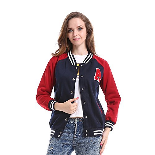 Biovan Women's Letter A Varsity Jacket Baseball Sweatshirt Sport Casual Coat, Navy/Red, One Size