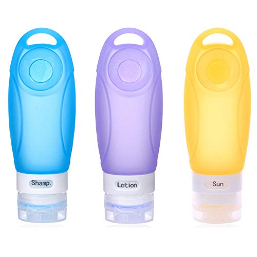 Kitdine Portable Soft Silicone Travel Bottles Set (3 OZ, Pink + White + Blue)