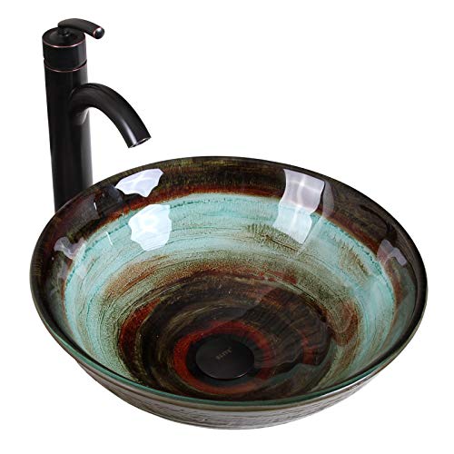 ELITE Space Tunnel Pattern Tempered Glass Bathroom Vessel Sink & Oil Rubbed Bronze Faucet Combo