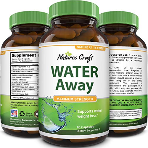 Pure and Potent Water Pills - Reduce Excess Water in the Body! Weight Loss and Appetite Suppressant Benefits - Natural Food Grade Source of Vitamin B6 - Pyridoxine Hydrochloride - Dandelion Root + Green Tea Diuretic for Women & Men- USA Made By Nature Bou