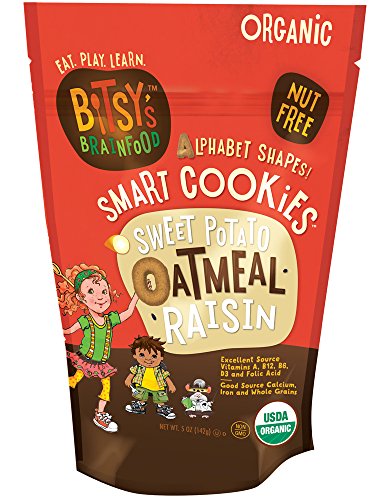 Bitsy's Organic Smart Cookies, Sweet Potato Oatmeal Raisin, 5 Ounce Gusset Bag, Healthy Organic Nut-Free Snacks with Fruits and Vegetables for Kids