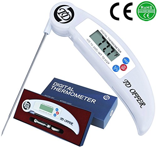 TD OFFER BBQ Meat Thermometer Instant Read,Best Digital Thermometer with Probe for Kitchen Oven Ciiking Food Grill Liquid and Candy,White