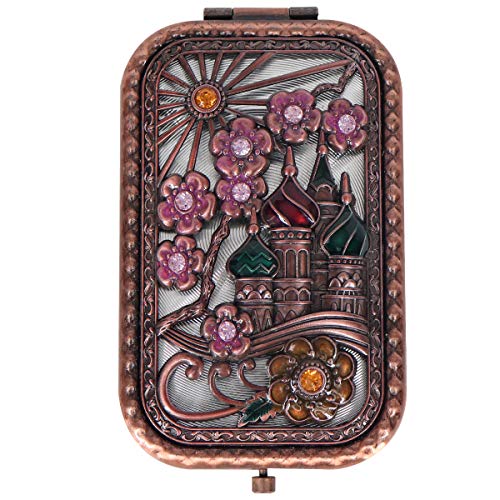 Ivenf Rose Golden Castle & Flower Square Vintage Compact Purse Mirror