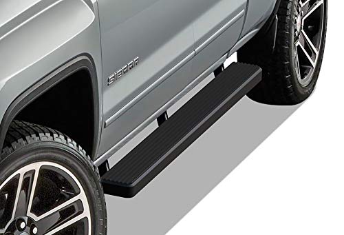 APS iBoard Running Boards (Nerf Bars Side Steps Step Bars) Compatible with 2007-2018 Chevy Silverado GMC Sierra Double Extended Cab & 2019 2500 3500 HD (Exclude 07 Classic) (Black Powder Coated 5in)