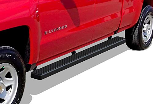 APS iBoard Running Boards 4 inches Matte Black Custom Fit 2007-2018 Chevy Silverado GMC Sierra Double Extended Cab & 2019 2500 3500 HD (Exclude 07 Classic) (Nerf Bars Side Steps Side Bars)