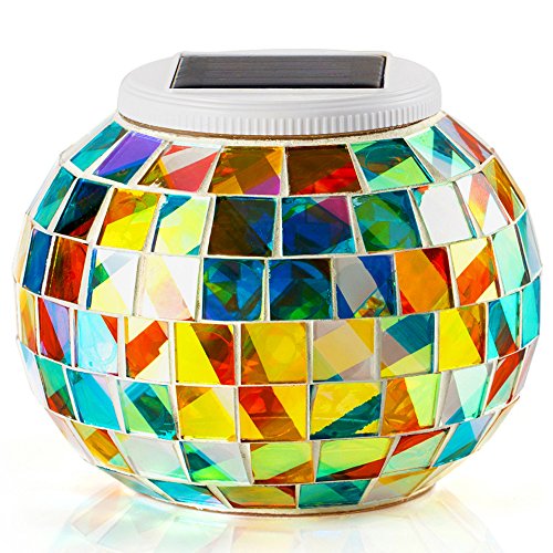 Solar Table Lights for Outdoor/ Indoor Decorations, Color Changing Mosaic Solar Powered Glass Ball Led Lights, Ideal Gifts-5.12 Inch in Diameter, 4.13Inch