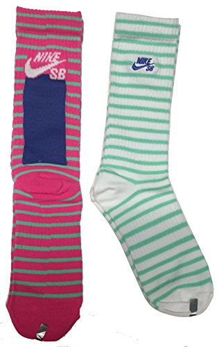 Nike SB 2-Pack Striped Out Crew Socks Girls Youth 5Y-7Y//9-11