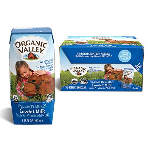 Organic Valley, Milk Boxes, Shelf Stable 1% Milk, Healthy Snacks, 6.75oz (Pack of 12)