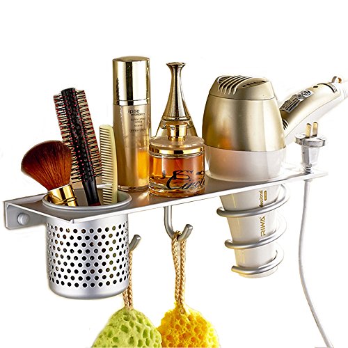 ETECHMART Eco-Friendly Aluminum Bathroom Organizer Hair Dryer Holder Cup Towel Hooks Wall Mounted