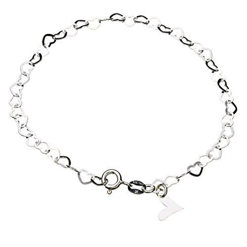 Sterling Silver Flat Heart Link Charm Anklet Nickel Free Chain Italy Adjustable
