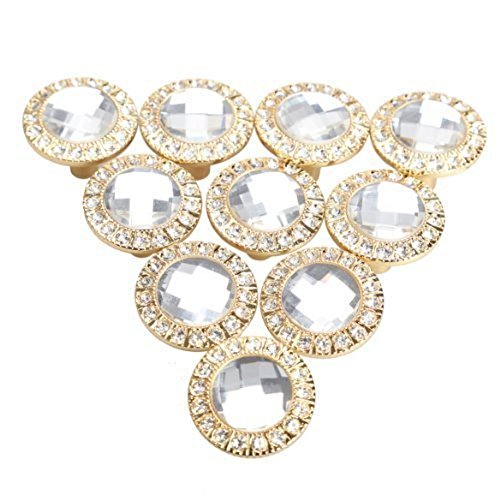 HOSL Round Pull Handle Glittering Rhinestone Knob for Cupboard Drawer Color Gold(Pack of 10)