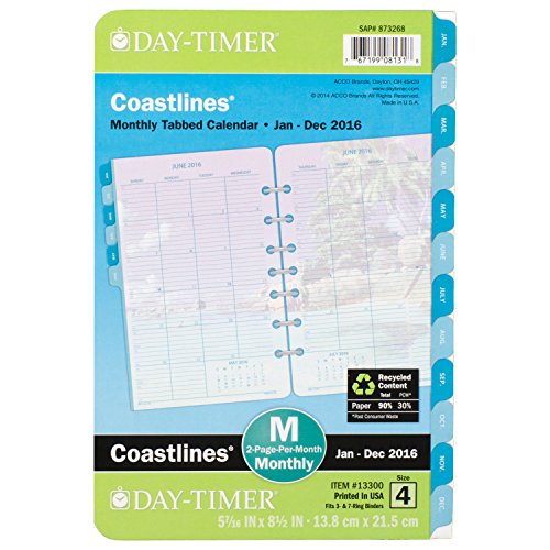 DayTimer Coastlines Desk-Size Monthly Refill 2016, 5.5 x 8.5 Inches Page Size (133001601)