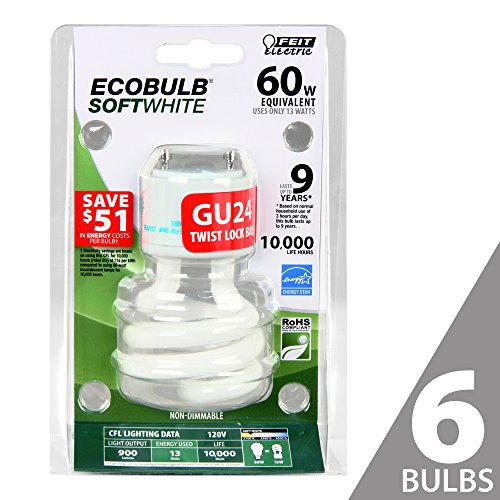 Feit Electric BPESL13T/GU24 BPESL13T/GU34/6 Equivalent Light, Soft White, 6 Piece