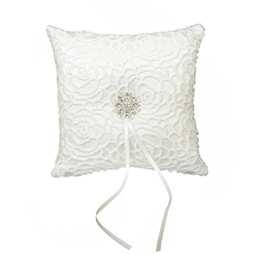 CJESLNA Wedding Ring Satin Diamante Flower Pillow, 15cmx15cm, White