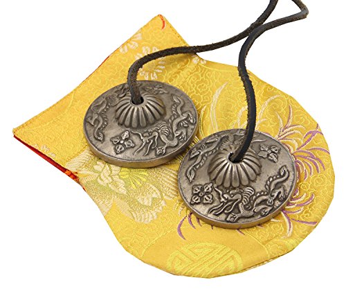DharmaObjects Tibetan Premium Quality"Dragon" Tingsha Cymbals 2.25" With Pouch