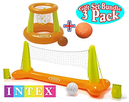 Intex Floating Pool Volleyball Game & Floating Hoops Basketball Game with Exclusive Matty's Toy Stop 4.25" Vinyl Basketball Gift Set Bundle - 3 Pack