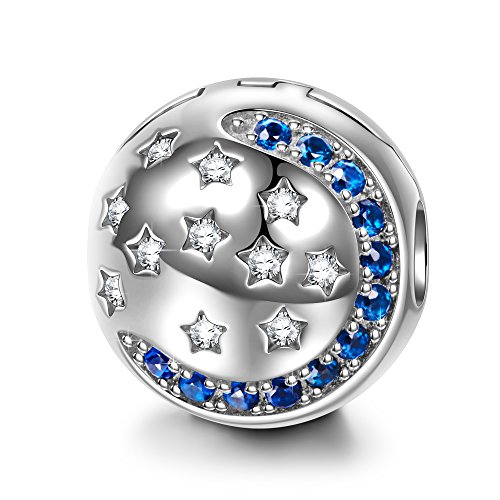 NinaQueen Christmas Charm Gifts for Daughter 925 Sterling Silver Starry Sky Star Moon Stopper Clasp Bead for Pandöra Bracelet Necklace Birthday Anniversary Jewelry Gift For Wife Mom Sister