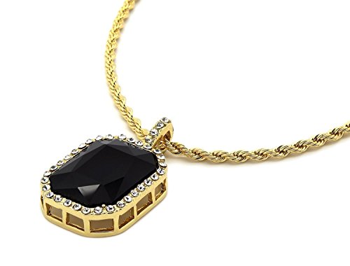 Mens 14k Gold Plated Iced Out Black Octagon Ruby Pendant With 3mm 24" Rope Chain Necklace