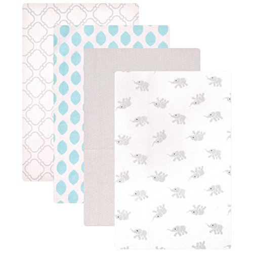Luvable Friends Unisex Baby Cotton Flannel Receiving Blankets, Elephant 4-Pack, One Size