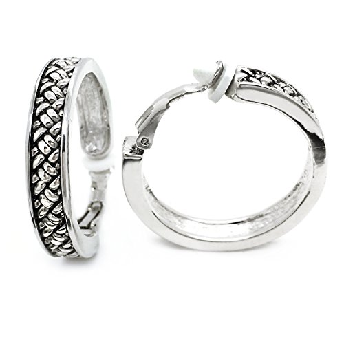 Sparkly Bride Antique Clip On Hoop Earrings Braided Rhodium Plated Women Fashion 1.25 Inches